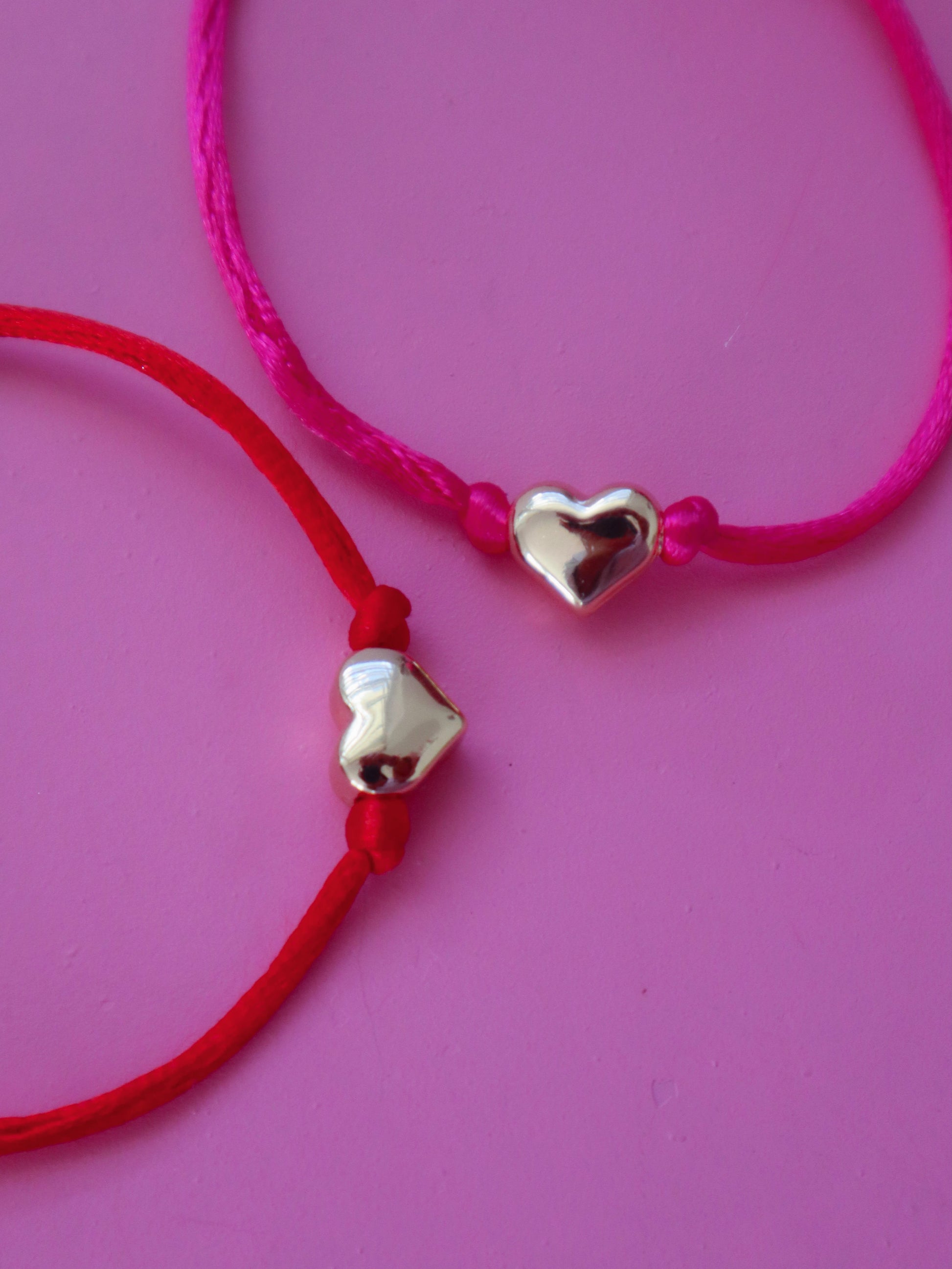 Pulsera de hilo con corazón bañado en oro.