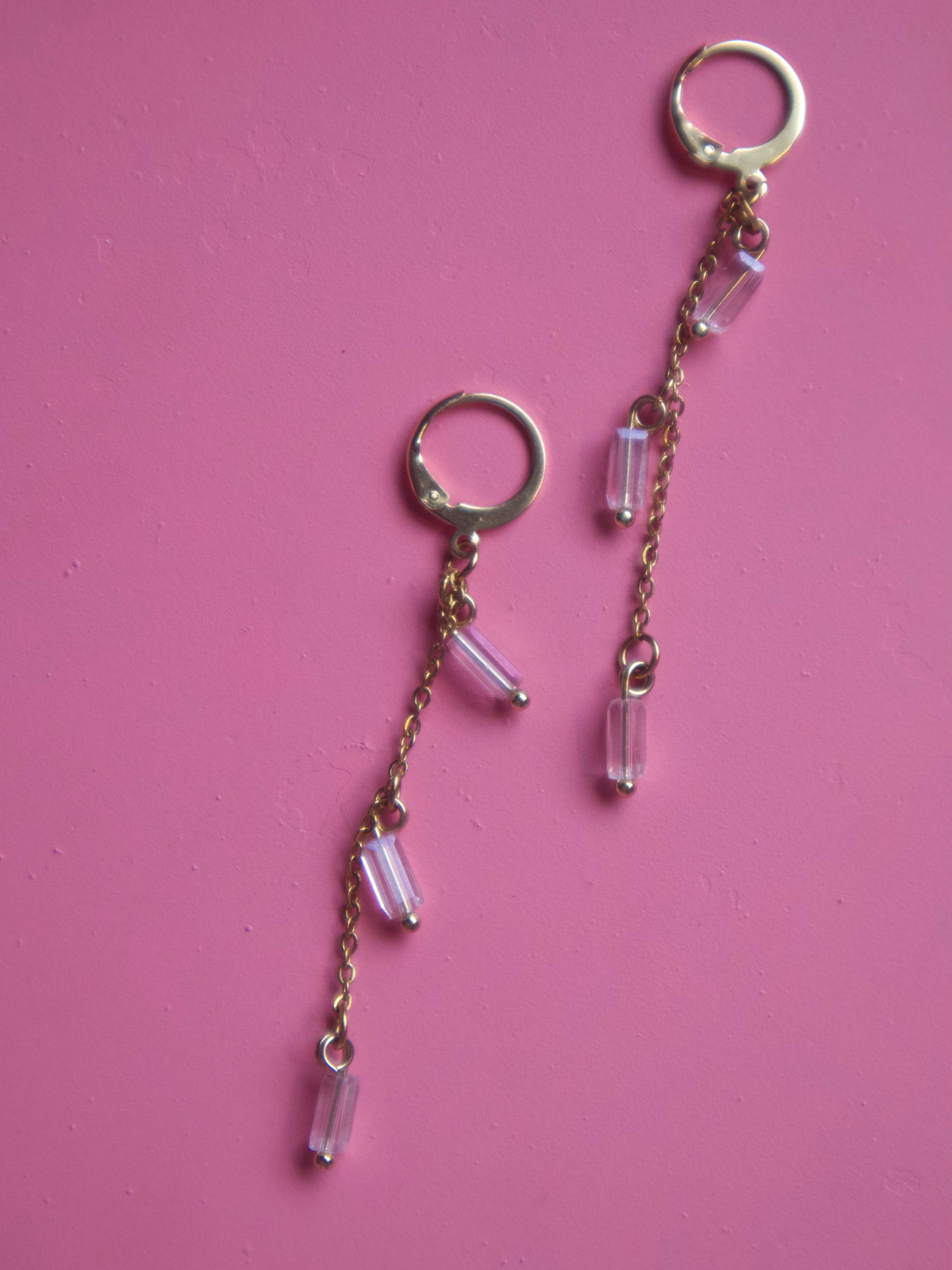 Cadena con charm de sol y pantallas en stainless steel. Medida de 17” con 2” de extensión. Largo de pantallas 2.5”.