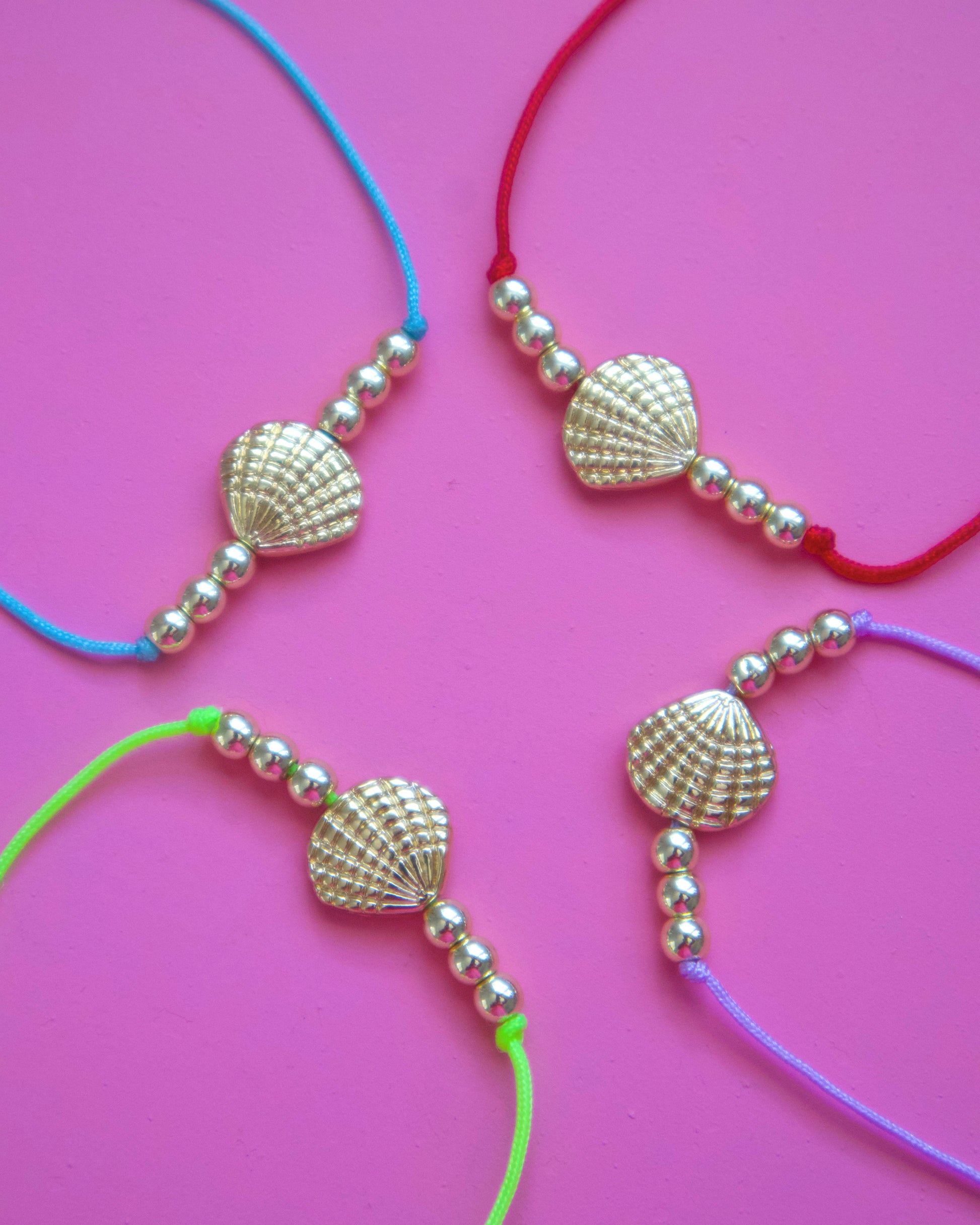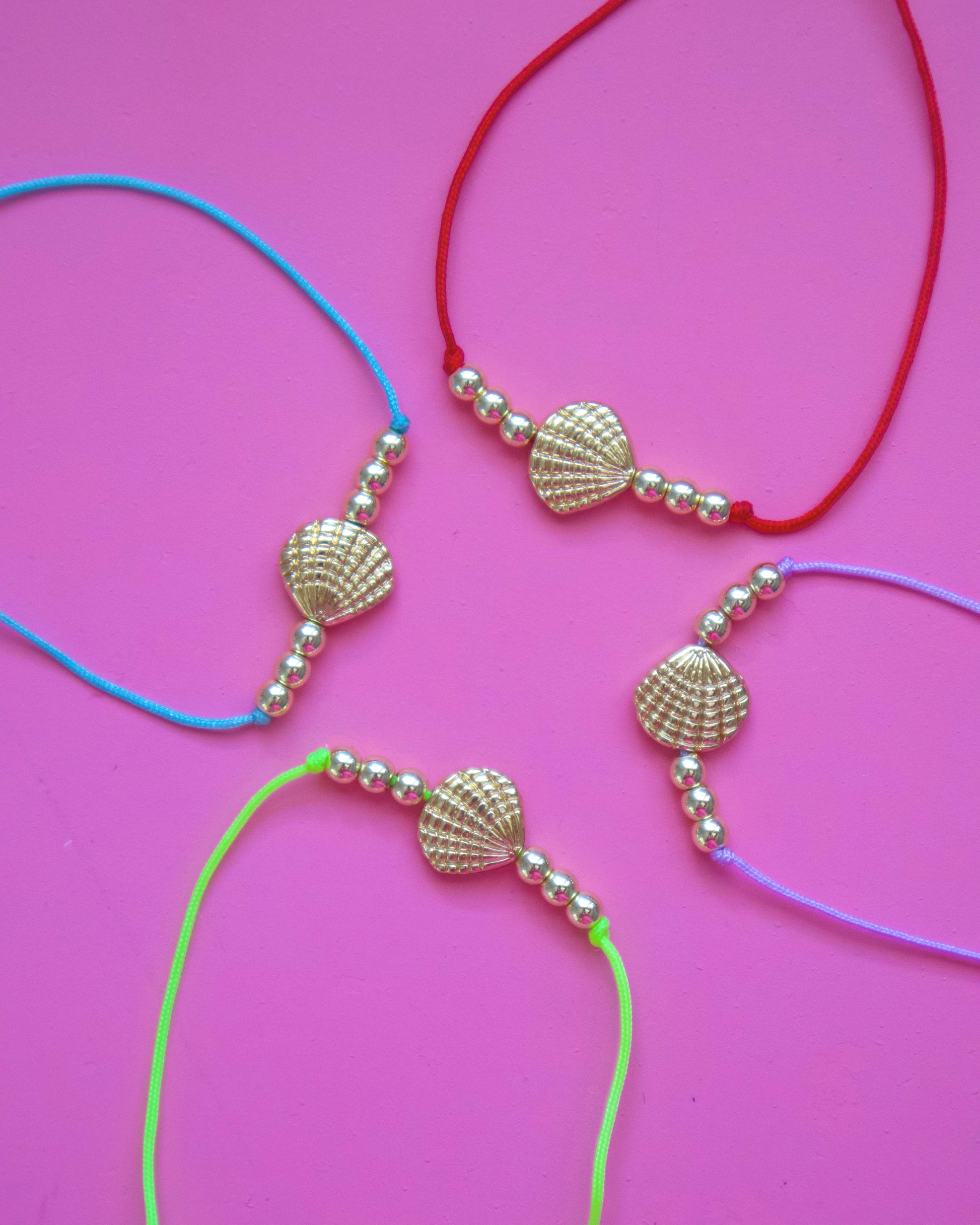 Pulsera de hilo ajustable con charm de Conchita bañada en oro.
