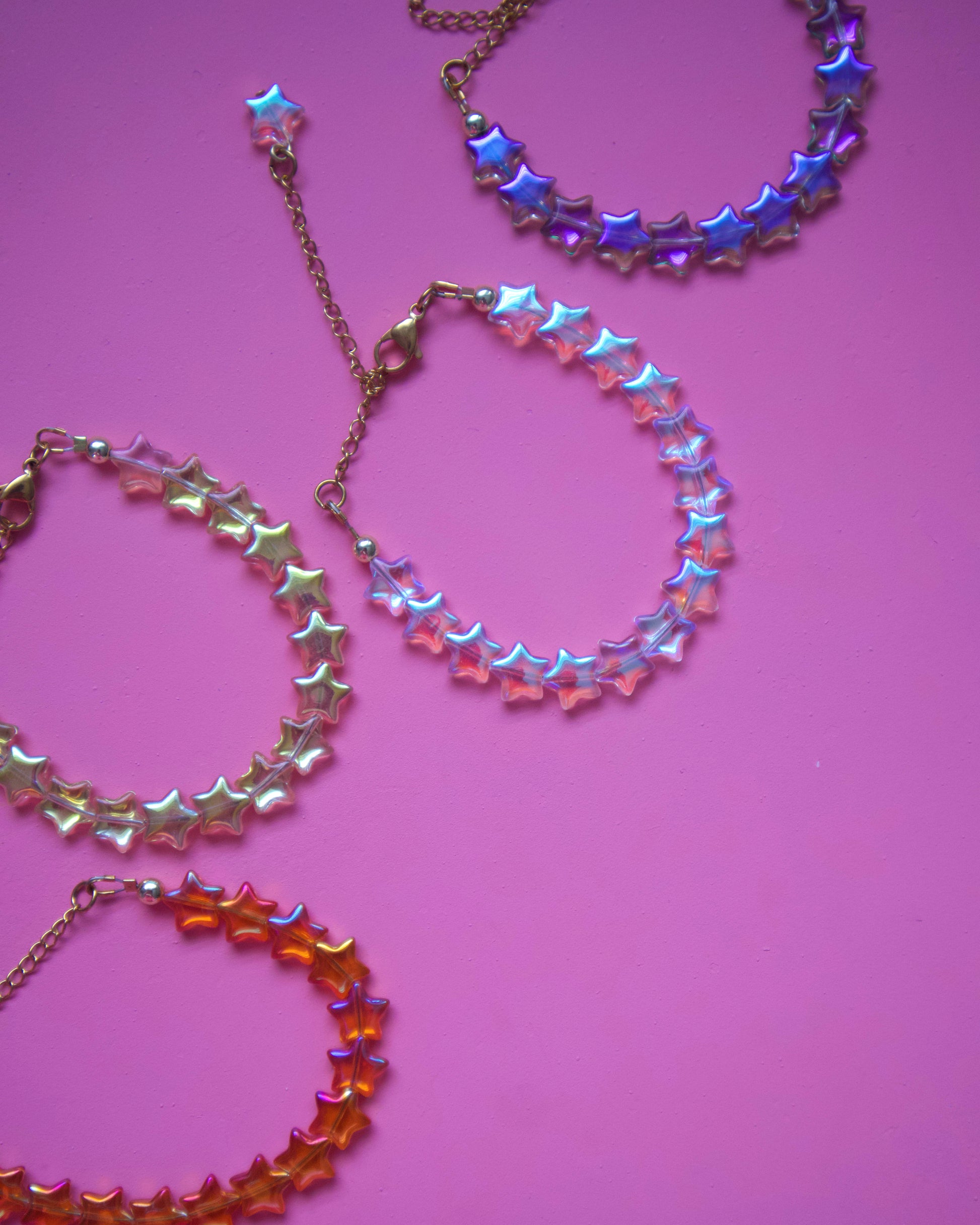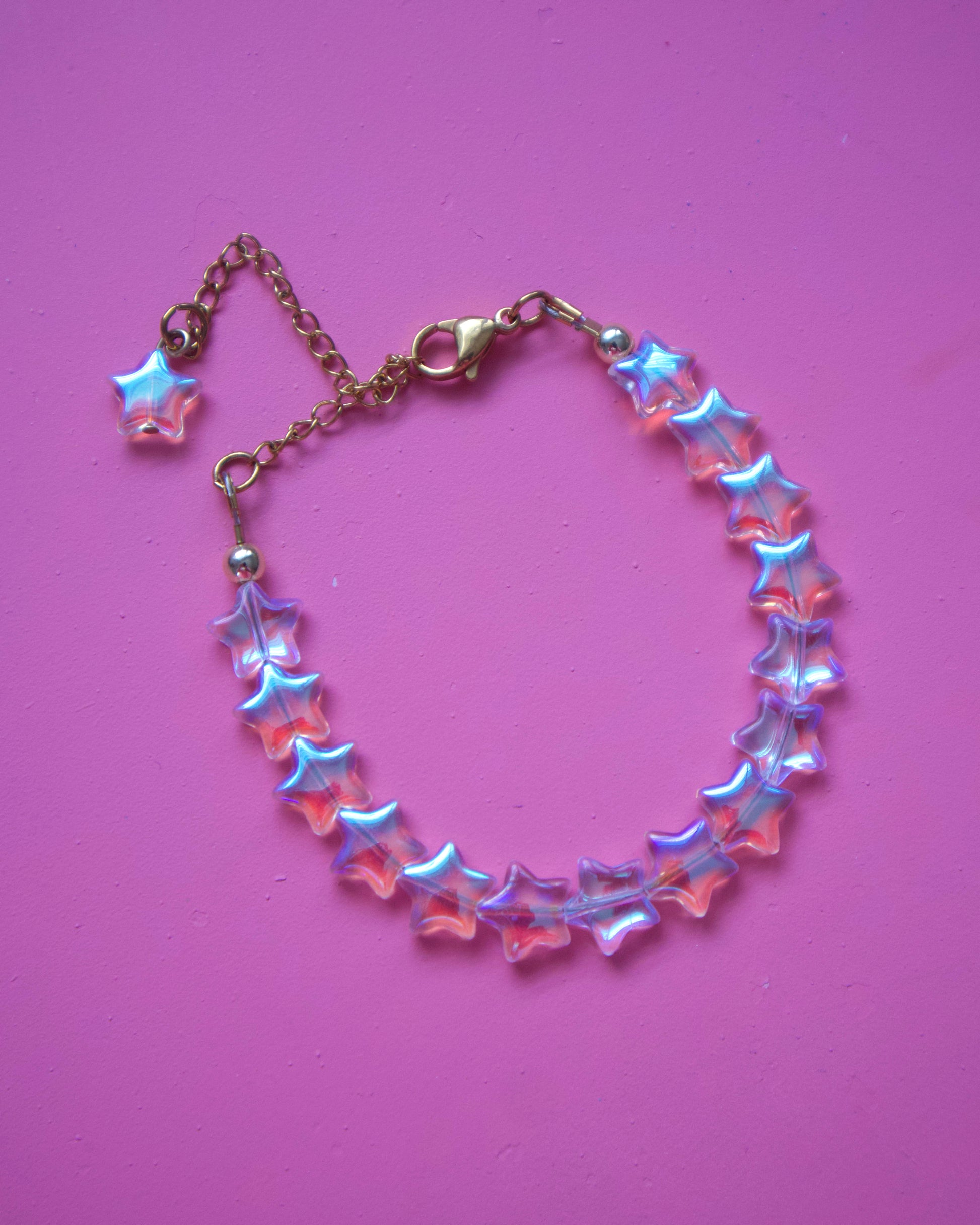 Pulsera de estrellas en tornasol. Medida de 5.5” con 2” de extensión.