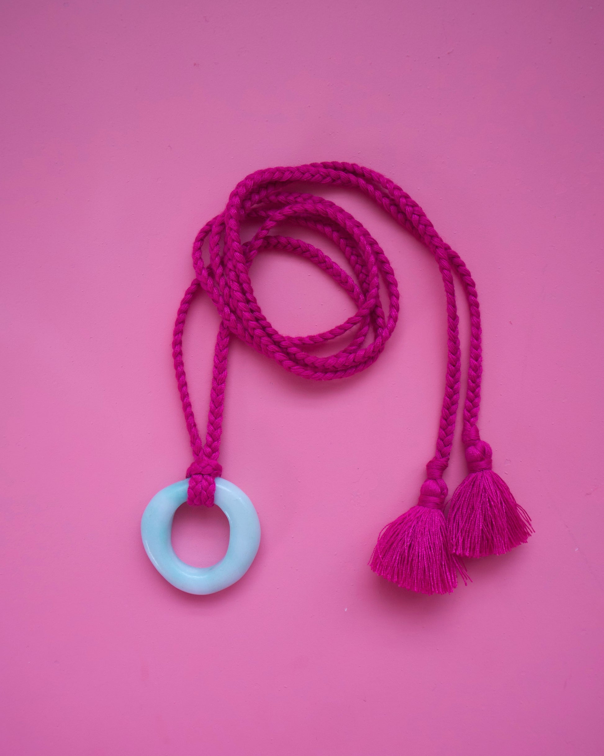 Collar de hilo con piedra de color. Medida de 43”