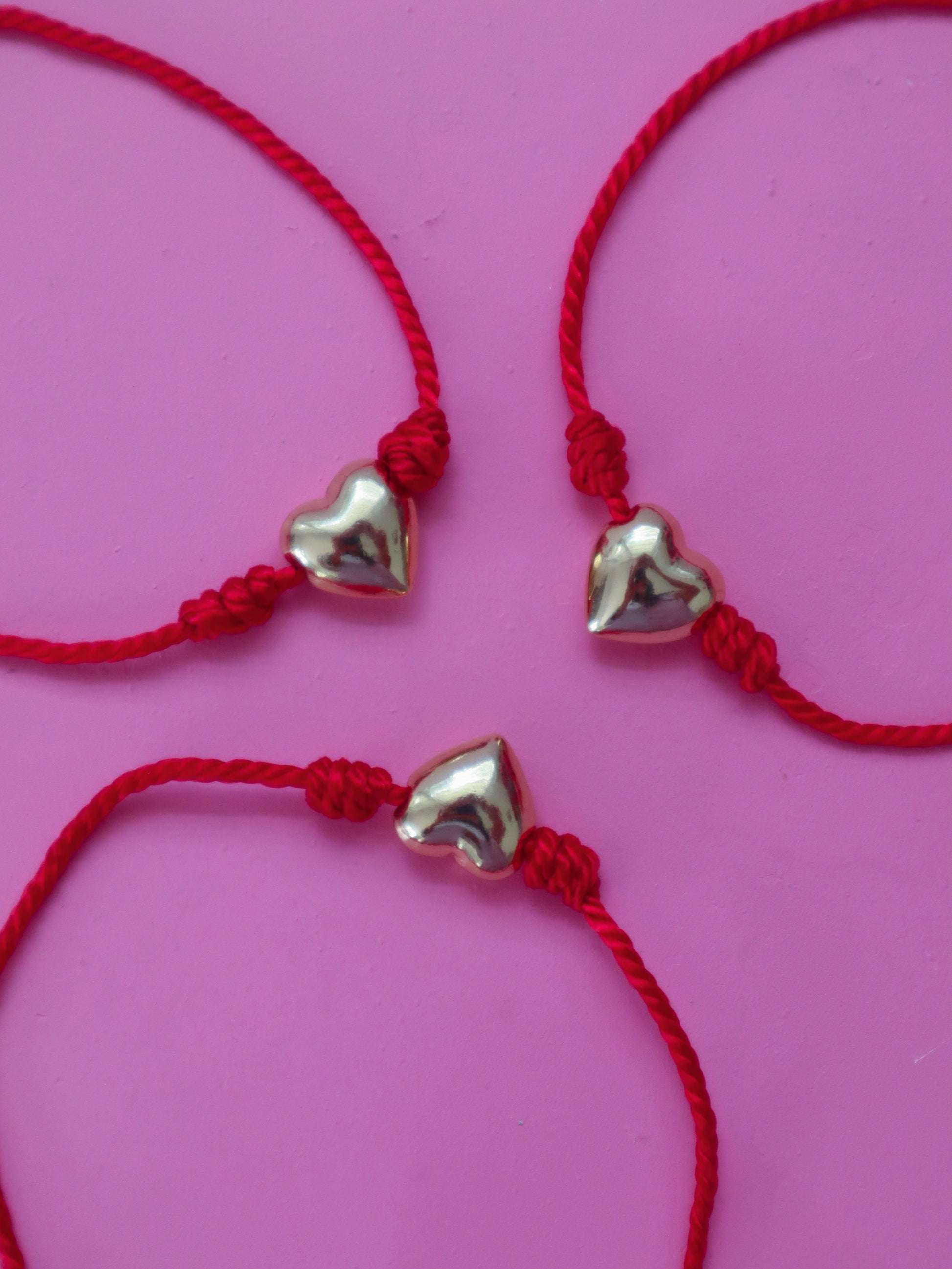 Pulsera de hilo rojo con charm de corazón bañado en oro.