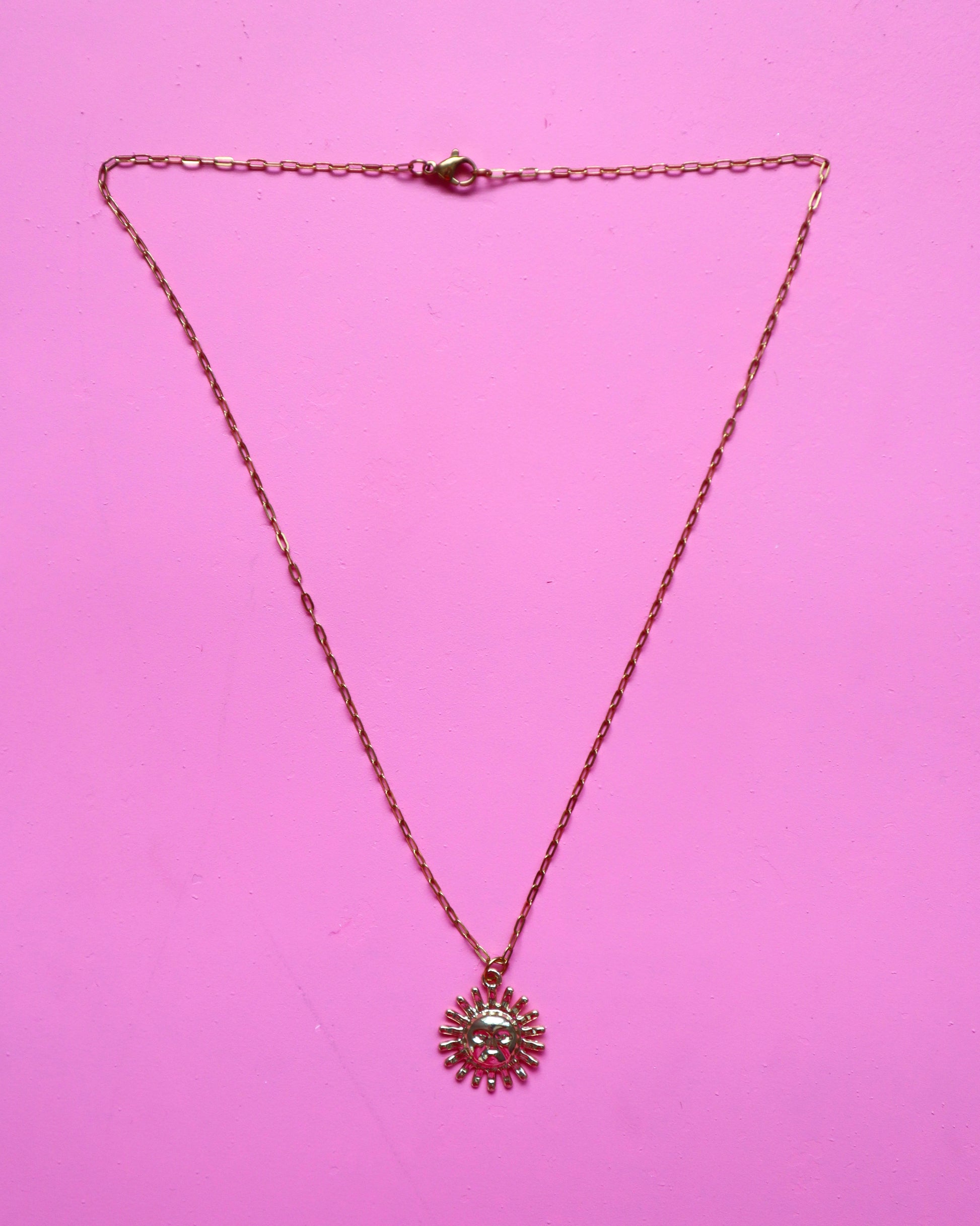 Cadena en stainless steel y charm bañado en oro. Medida de 17”